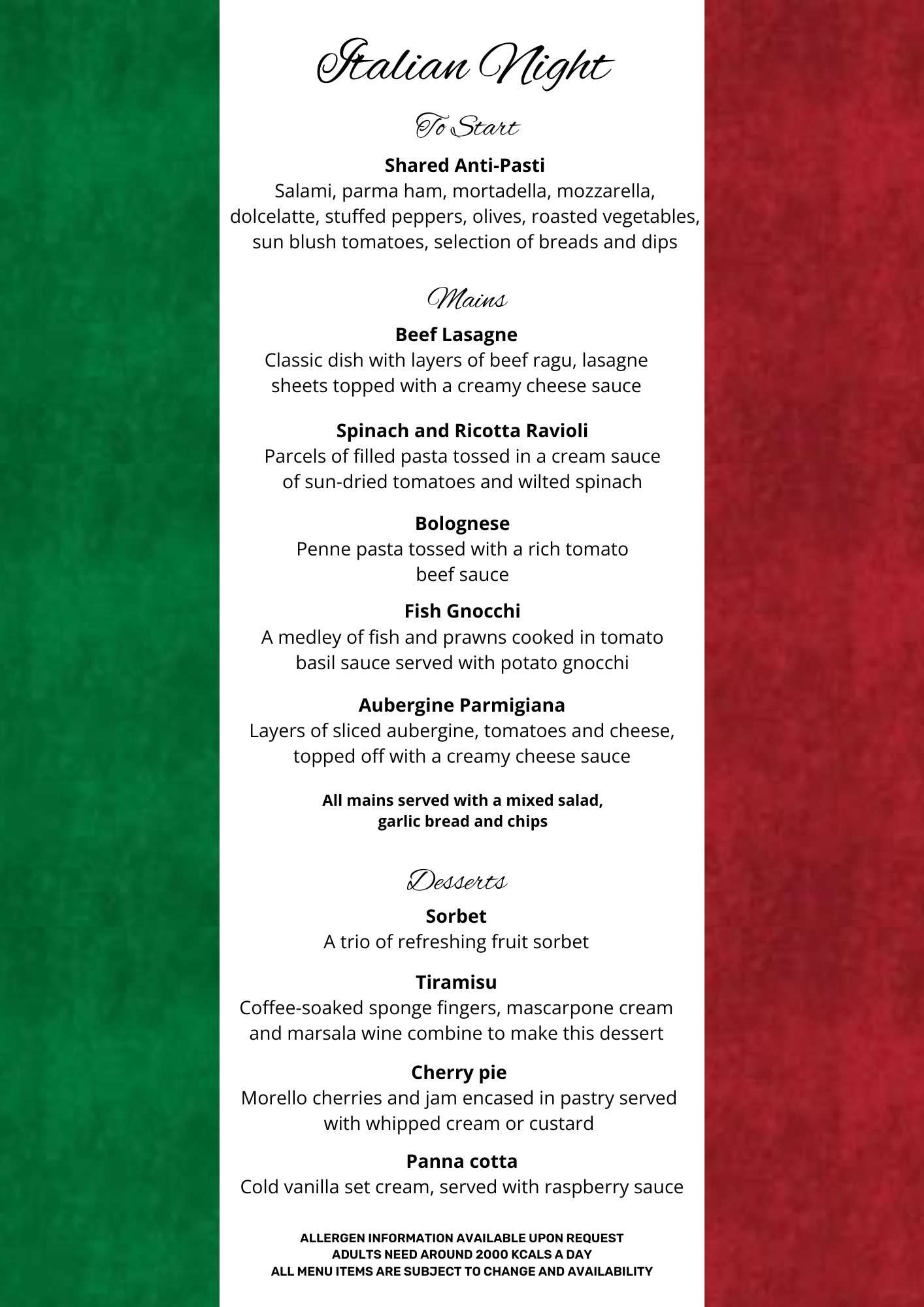 Join us on Wednesday 27th May for Italian Night in our Paddock Restaurant!