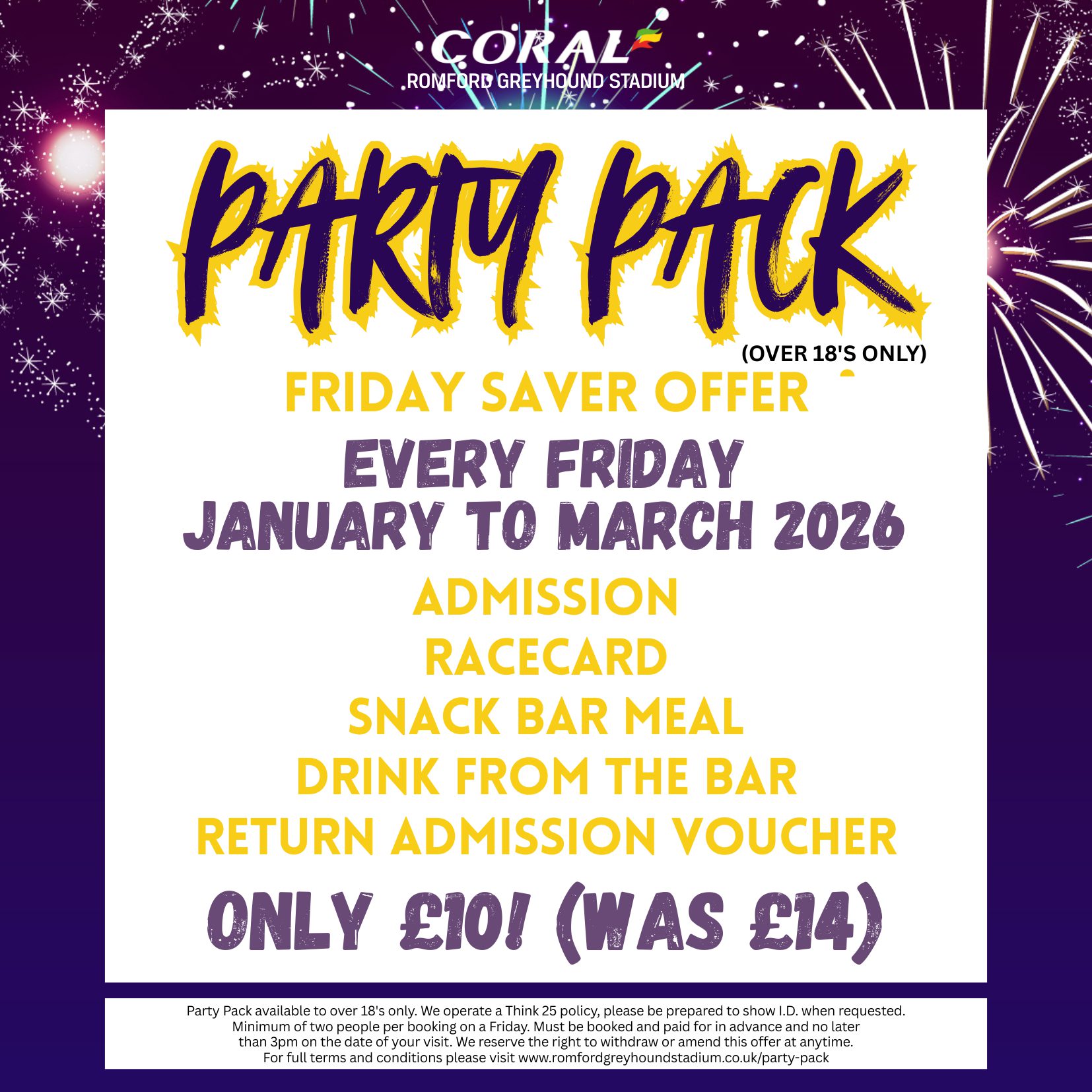 Join us on a Friday evening through January, February or March 2026 and take advantage of our fantastic Party Pack Friday Saver offer!