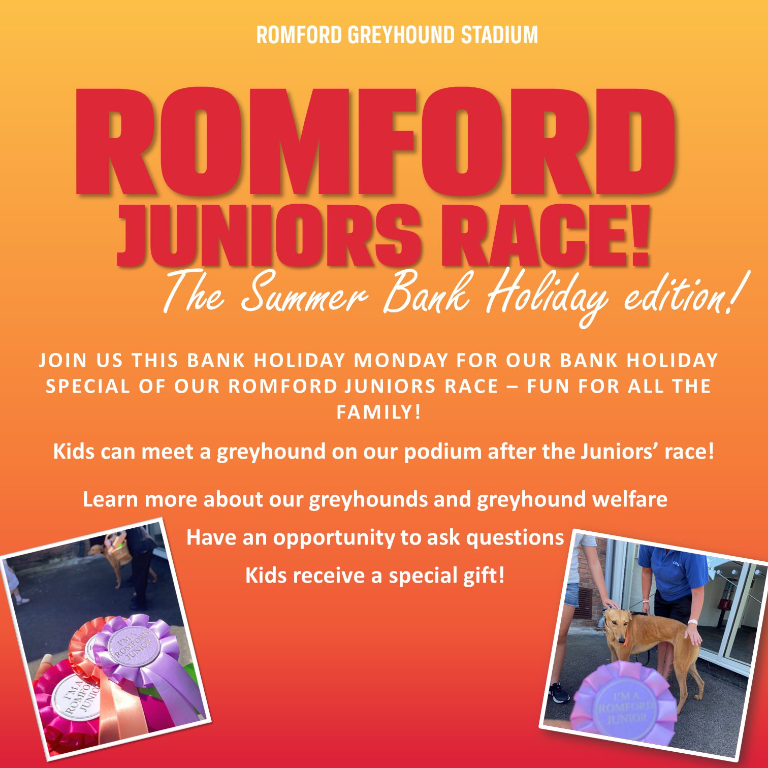 Don't Miss Our Summer Bank Holiday edition Romford Juniors race Monday 29th August!